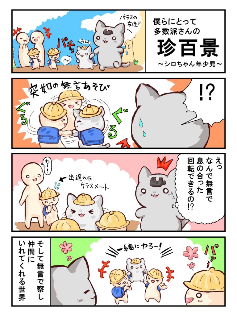 少数派多数派どちらとも、子どもの行動って楽しいと思う僕でした。