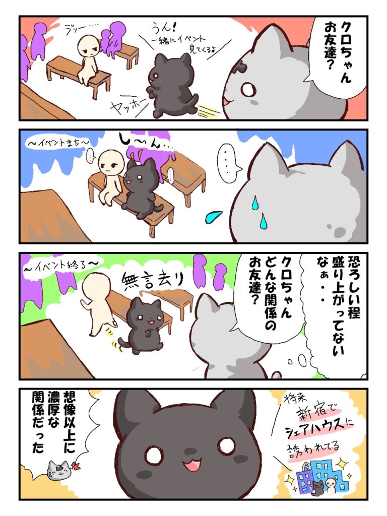 いや、本当に同じ発達障害なのだけど、ADHD寄りの僕とASD寄りのクロちゃんの友情の感覚が違いすぎて、コミュニュケーションの仕方に驚かせてばかりです。