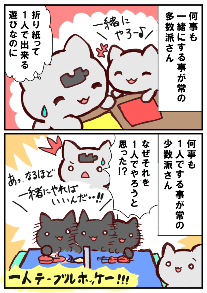 どうでしょう、僕の少数派さんと多数派さんの観察記録は。